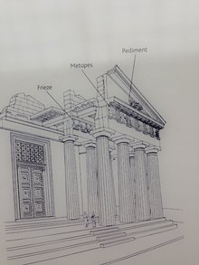Ingang til Parthenon med frisen Relieffet på Niløse skole